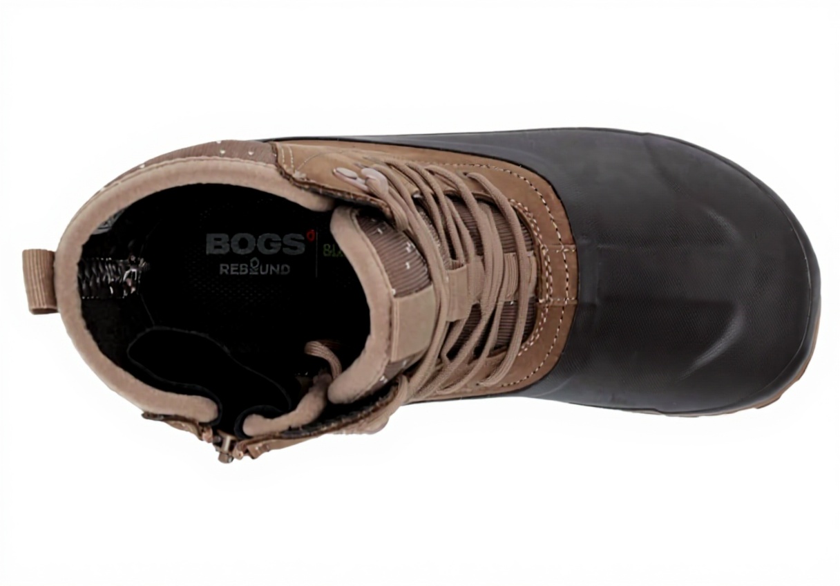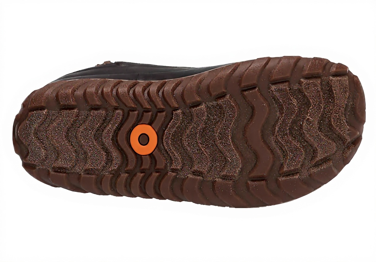 La semelle en caoutchouc procure une adhérence fiable sur la neige et les surfaces glissantes, idéale pour les hivers modérés.