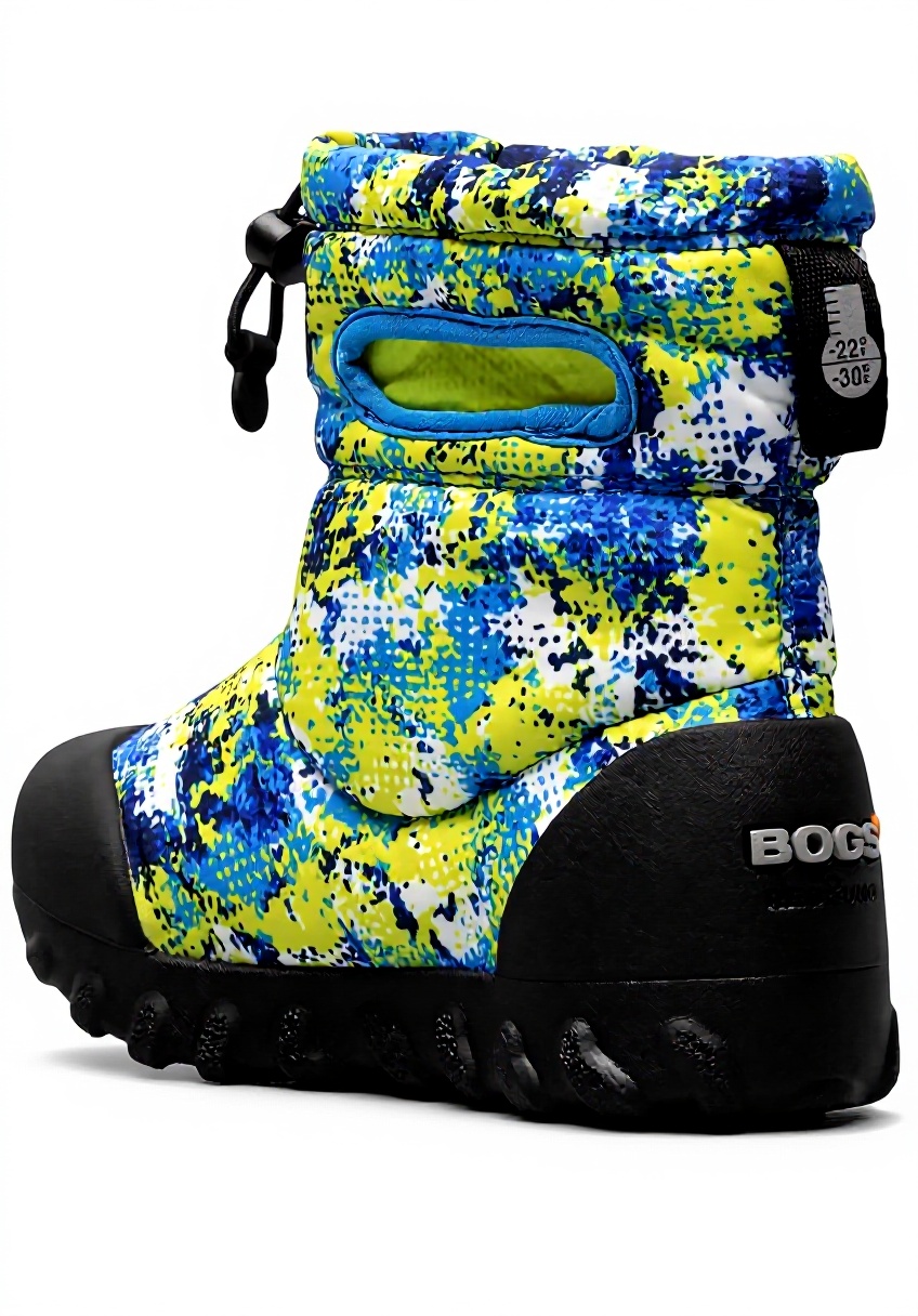 Disponibles en tailles enfant avec semelle antidérapante, ces bottes présentent un système de cordon réglable pour un ajustement personnalisé et des poignées renforcées contre la neige. Le modèle Bleu Marine Multicolore intègre une languette réfléchissante et supporte des températures jusqu’à -30°C.