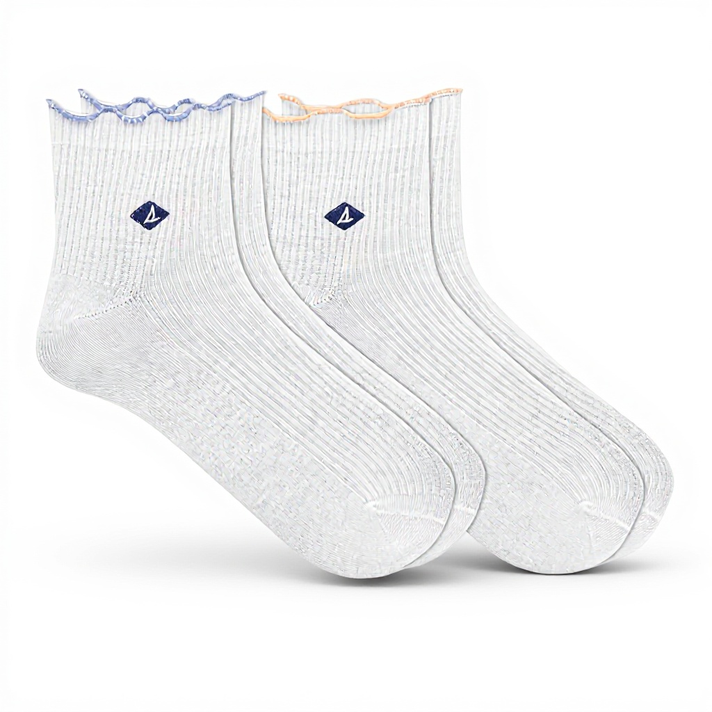 Ces chaussettes cheville pour femme de la marque Sperry se distinguent par leur design raffiné avec des bords festonnés contrastés et une texture côtelée. Fabriquées avec des matériaux de qualité, elles assurent un confort durable et une excellente respirabilité, adaptées à un port quotidien.