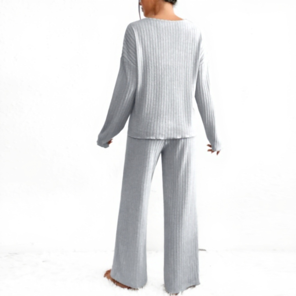 Cet ensemble 2 pièces se compose d’un pull en tricot à manches longues avec col rond et d’un pantalon à jambes larges, confectionnés en laine de qualité. Le design épuré et les finitions soignées en font une tenue à la fois élégante et confortable, adaptée aux saisons fraîches.