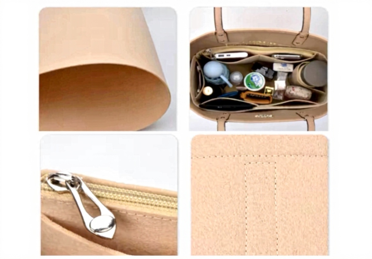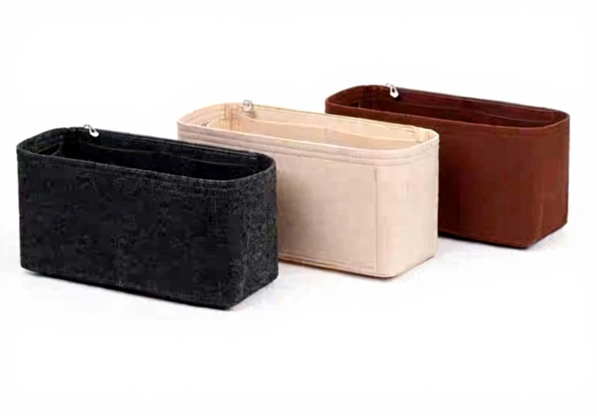 Dimensions : 14,5 x 32,99 x 27,99 cm. Matériau : feutre. Poids léger. Disponible en styles A et B, et couleurs noir, beige, marron. Conçu spécifiquement pour le sac Goyard Anjou PM.