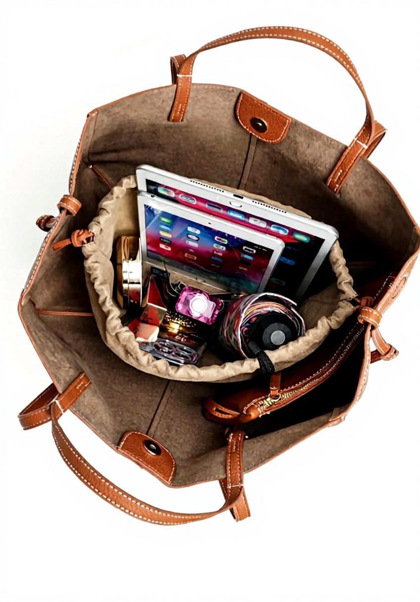 Le sac peut contenir un portefeuille, un téléphone portable, des écouteurs, une batterie externe, des lunettes et d’autres petits accessoires du quotidien.