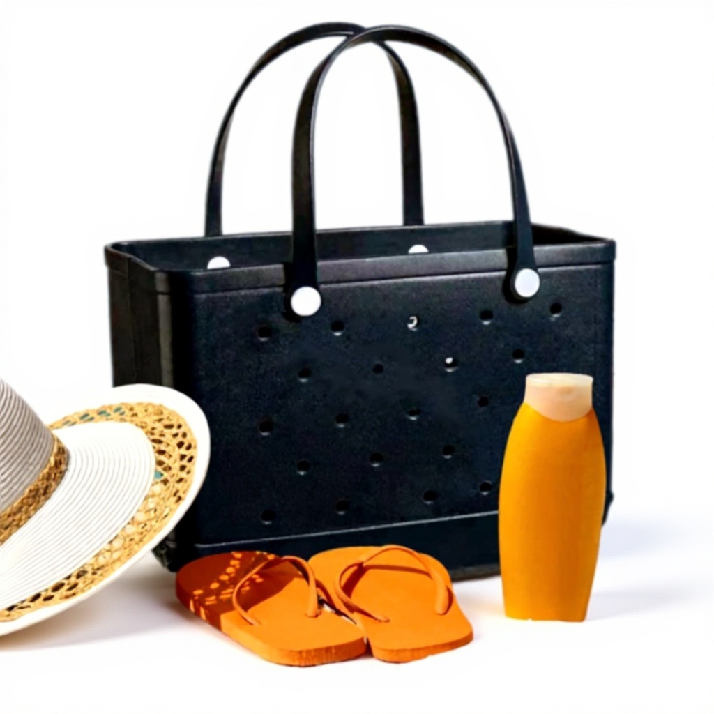 Ce sac de transport combine élégance et fonctionnalité avec son matériau en caoutchouc EVA de haute qualité, robuste et à séchage rapide. Sa conception inclut des trous d’aération pour éviter l’accumulation d’humidité, tandis que le fond large avec motif antidérapant assure une stabilité optimale.