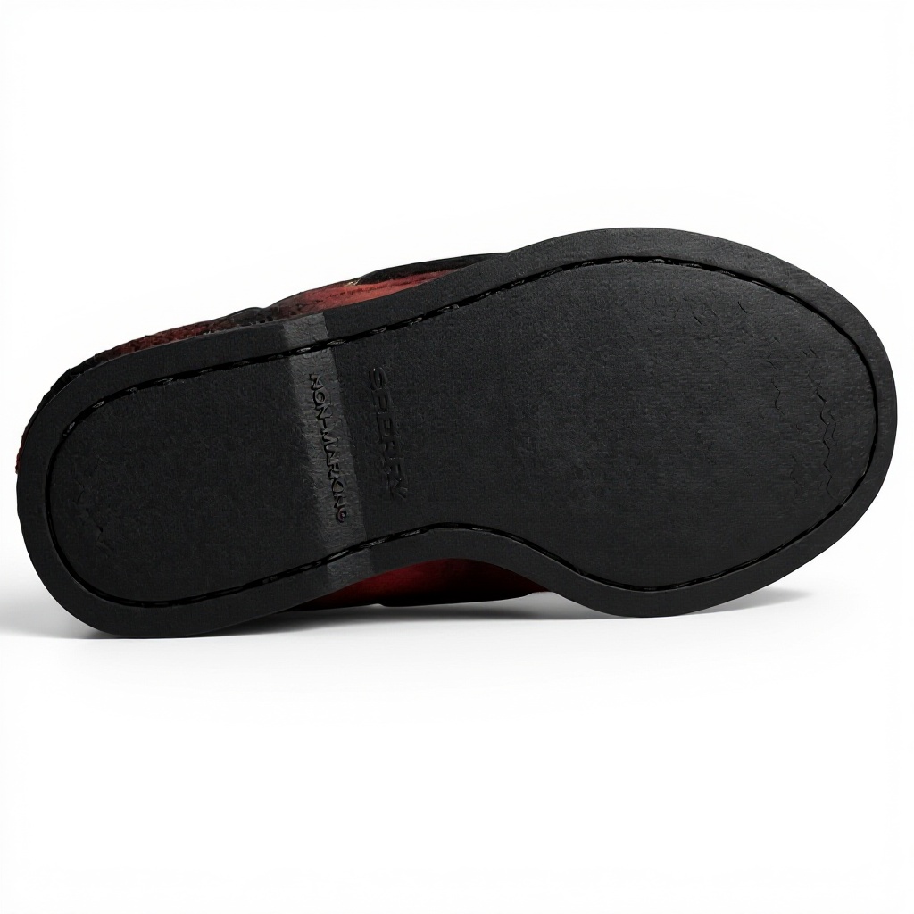 La Sperry A/O 2-Eye incarne l’héritage nautique avec des matériaux modernes et durables. Son dessus est confectionné en laine SeaCycled, issue de sources responsables, tandis que la construction mocassin cousue main assure une finition soignée et robuste. La doublure intérieure en peau de mouton SeaCycled apporte une chaleur et une respirabilité optimales, et le système de laçage à 360° avec lacets en cuir brut permet un ajustement sur mesure pour un maintien parfait.