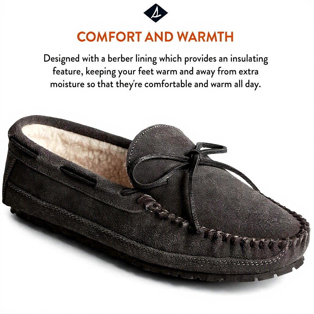La pantoufle Brandon de Sperry se distingue par son design masculin et ses matériaux de qualité supérieure. Le dessus est confectionné en daim de vache doux associé à du textile pour une respirabilité optimale. La semelle intérieure entièrement rembourrée du talon aux orteils assure un amorti exceptionnel, tandis que la doublure en fausse fourrure de barbier procure une chaleur et une douceur incomparables. Les lacets en cuir brut ajoutent une touche d’authenticité à cette pantoufle au style intemporel.