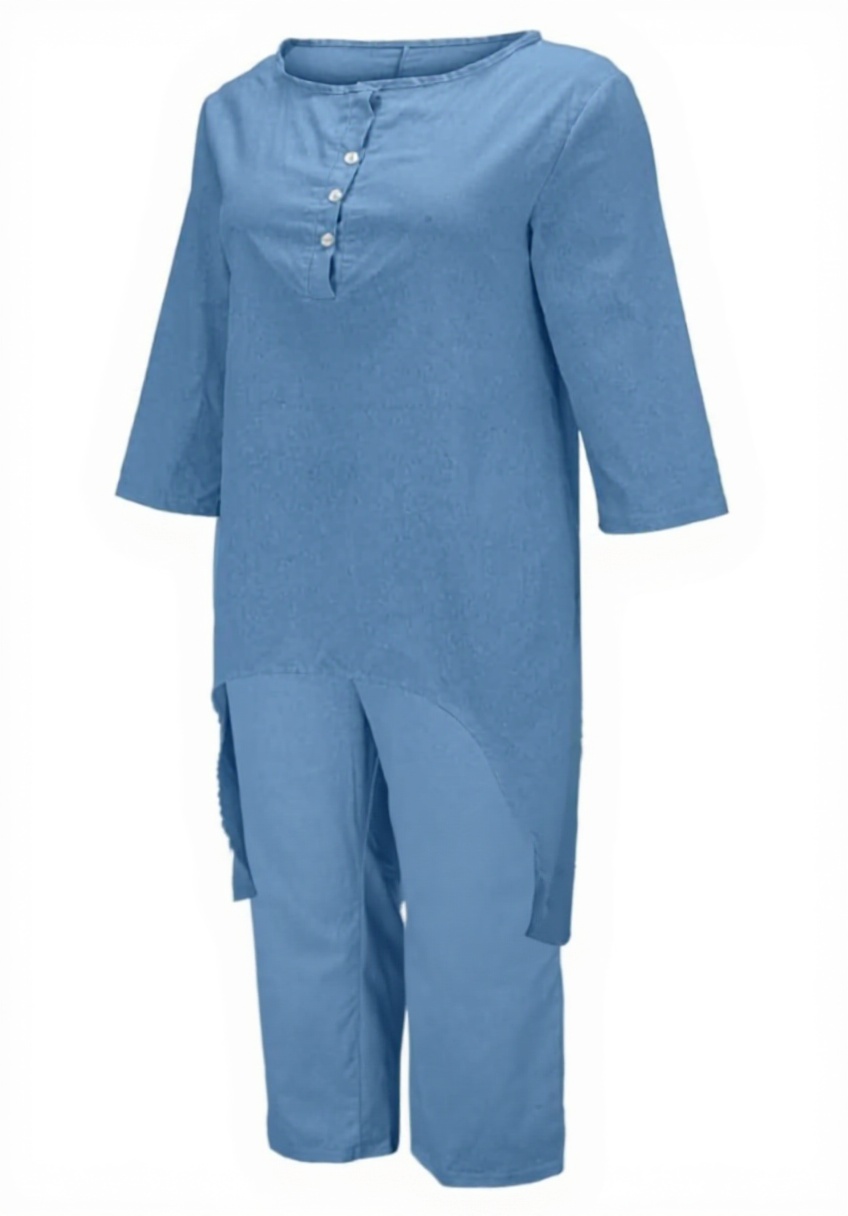Ce survêtement sexy pour femme est conçu en coton et lin uni, offrant une sensation légère et respirante. Avec son haut et son pantalon à jambes larges, il assure un confort optimal tout en maintenant un style décontracté et élégant. Les manches longues et la coupe ajustée en font un choix pratique pour diverses occasions.