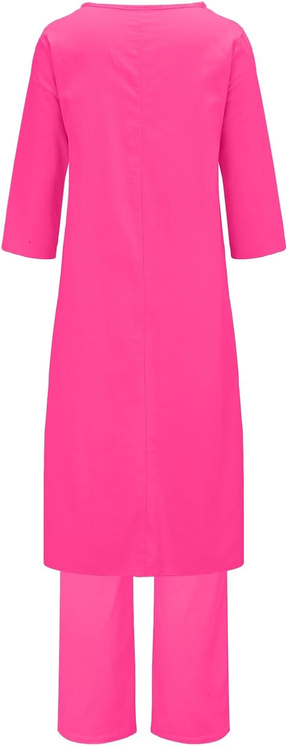 Ce survêtement se distingue par son mélange de coton et de lin, offrant une respirabilité optimale et un confort tout au long de la journée. La coupe large des manches et des jambes assure une liberté de mouvement, tandis que la taille haute élastique apporte un ajustement personnalisé et flatteur. Conçu pour un usage régulier, il allie durabilité et style décontracté.
