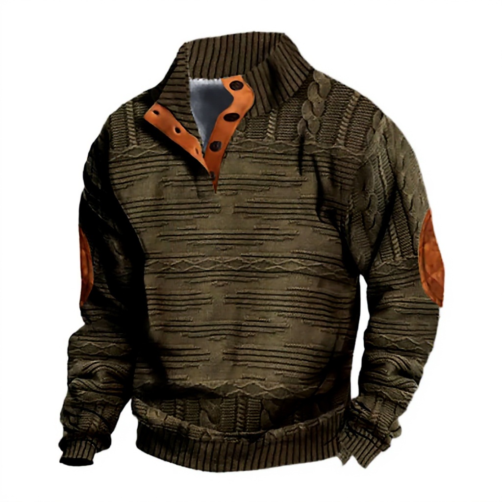 Sweat-shirt à col boutonné pour homme – Sweat-shirt en tricot avec coudières