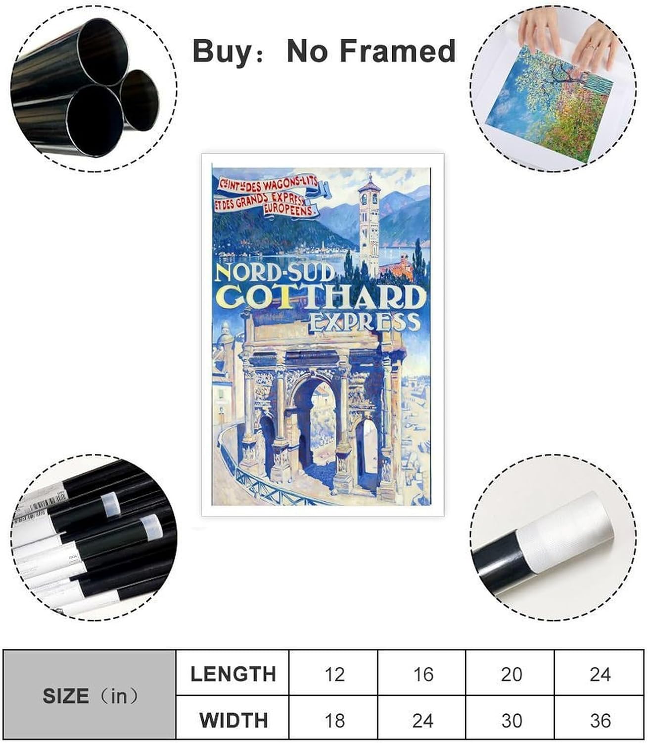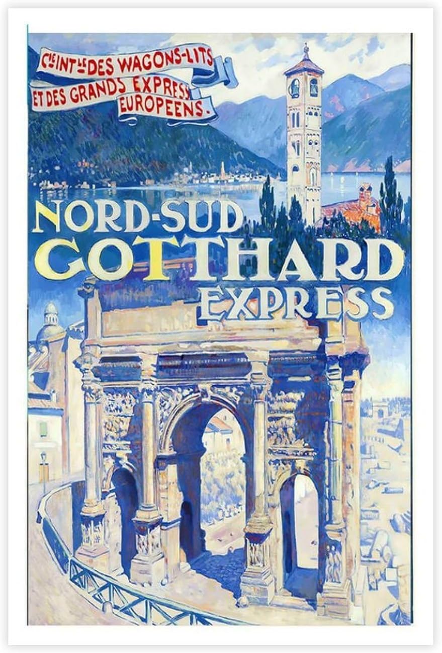 ZJIXAOSD Affiche murale décorative sur toile style rétro Gotthard Express